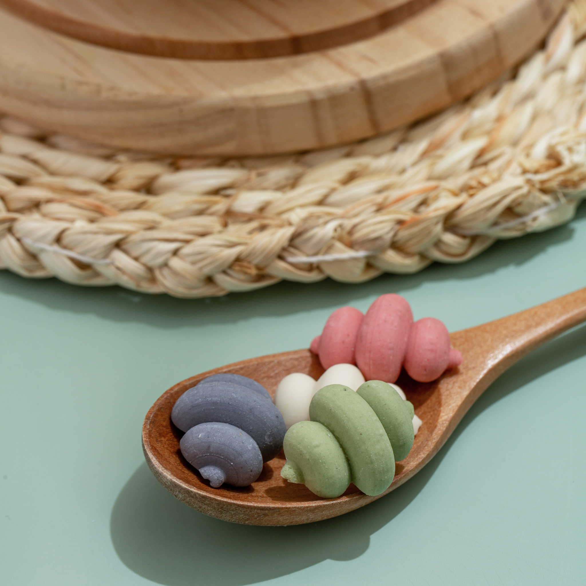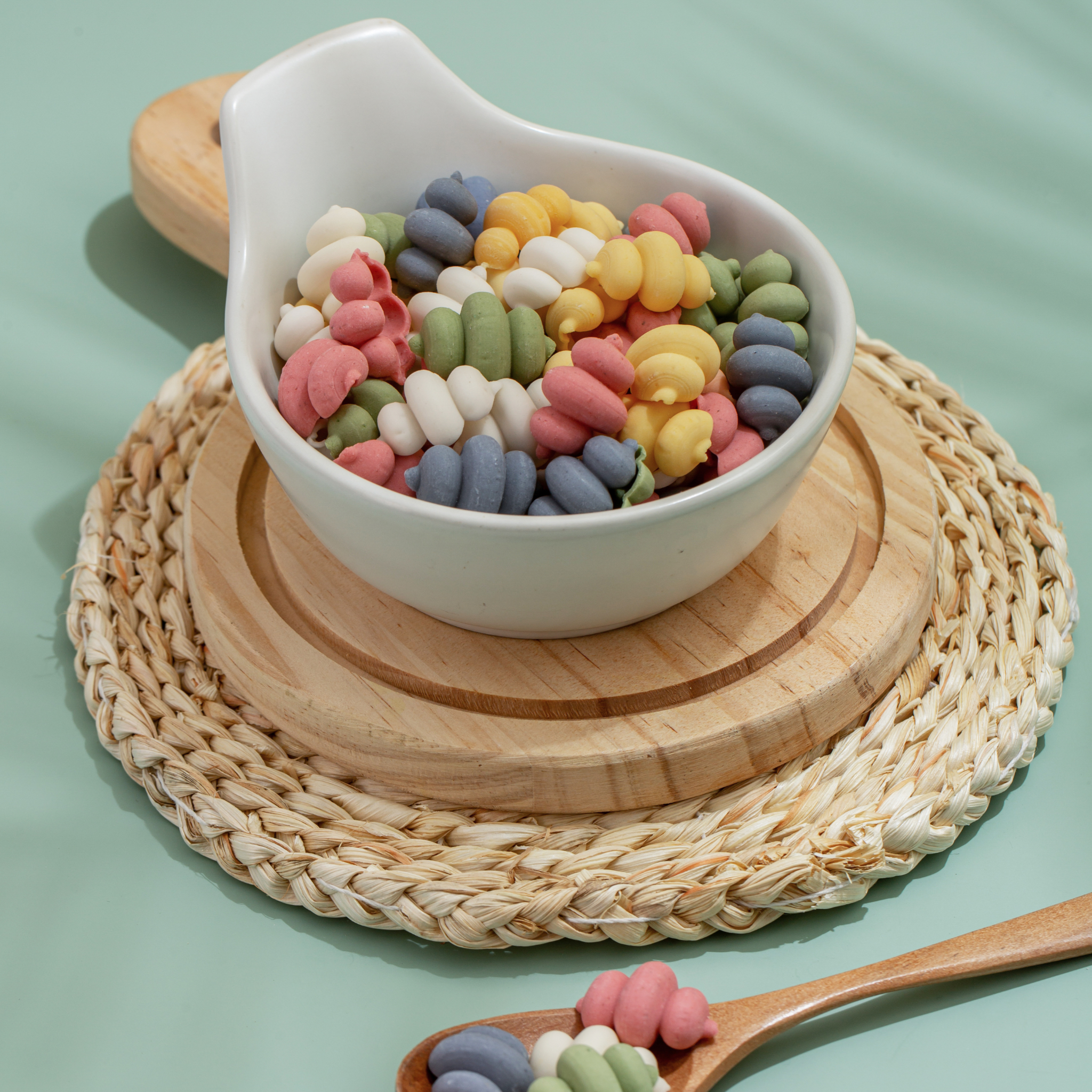 - Thành phần: Bột gạo tẻ, tinh bột khoai tây, bí đỏ, củ dền, rau cải ngọt, gấc, cải bó xôi, hoa đậu biếc, khoai lang tím.