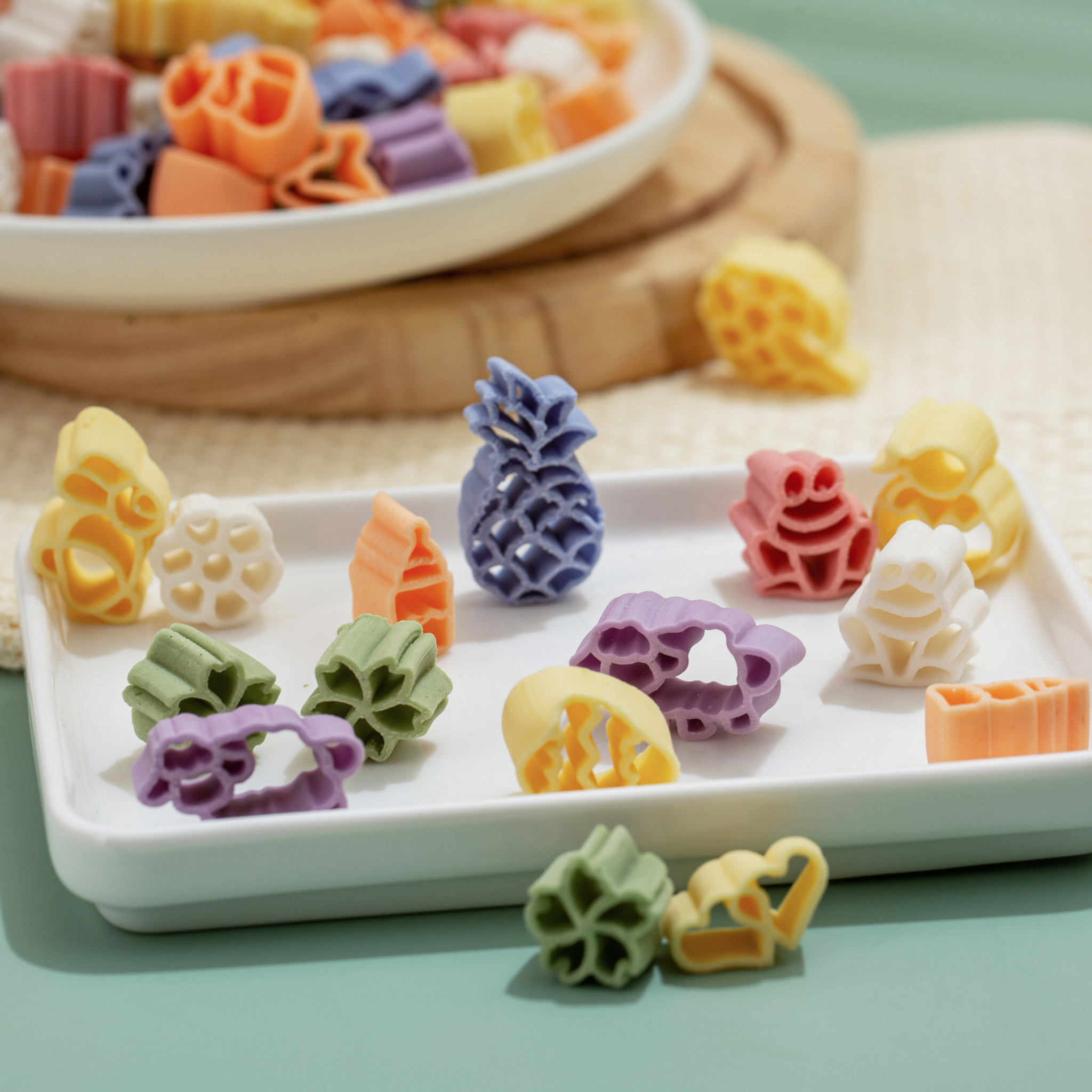 - Thành phần: Bột gạo tẻ, tinh bột khoai tây, bí đỏ, củ dền, rau cải ngọt, gấc, cải bó xôi, hoa đậu biếc, khoai lang tím.
